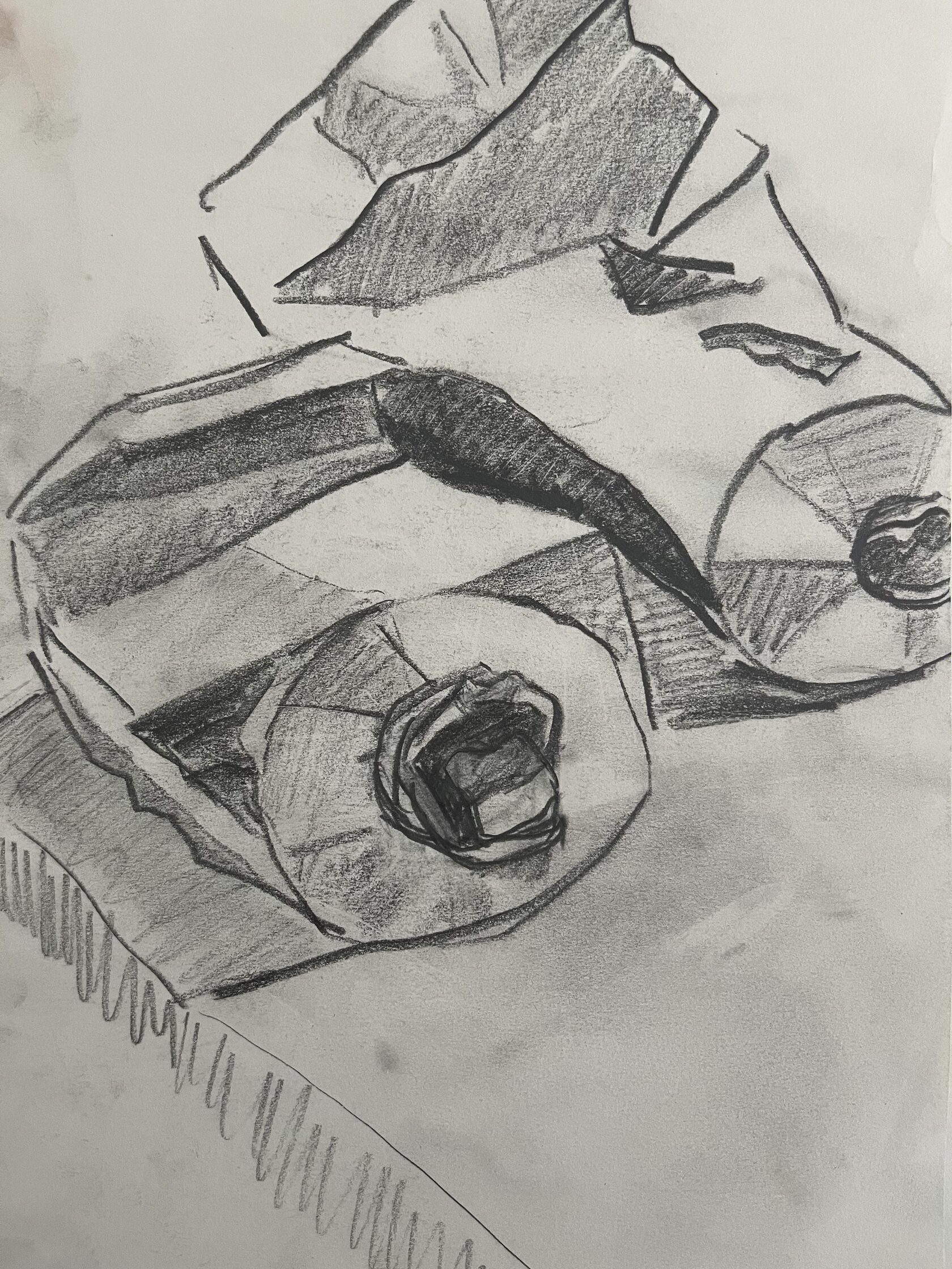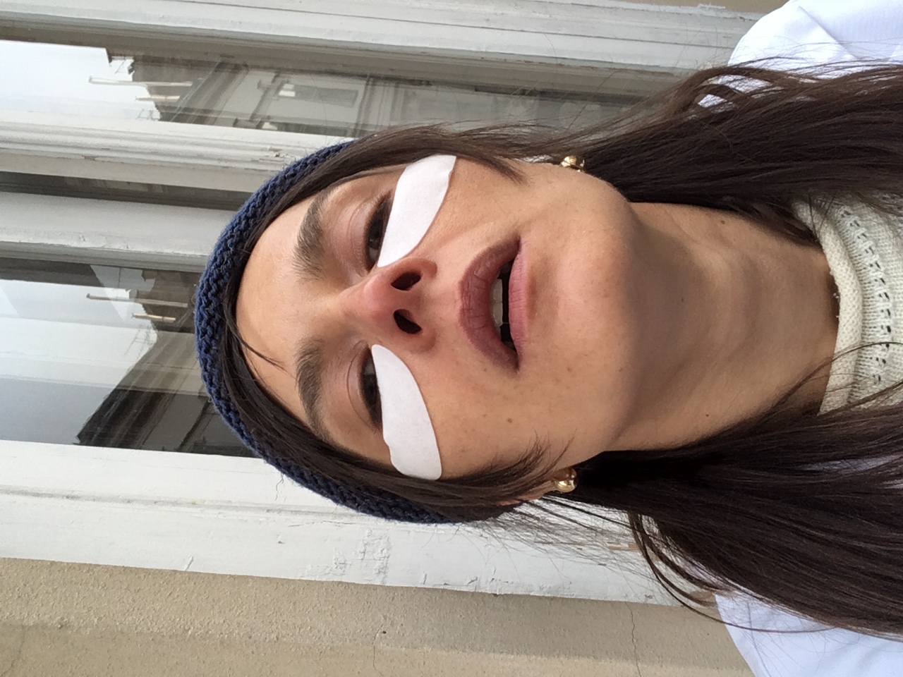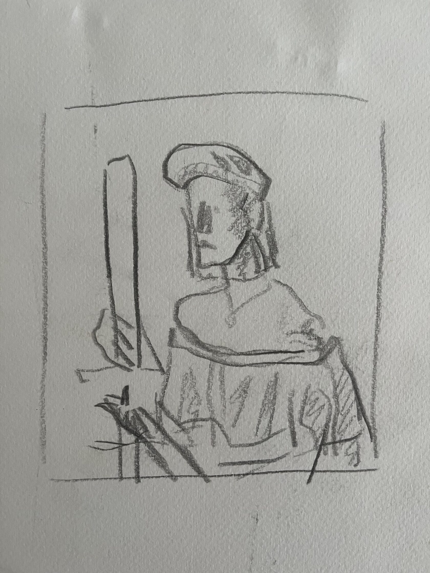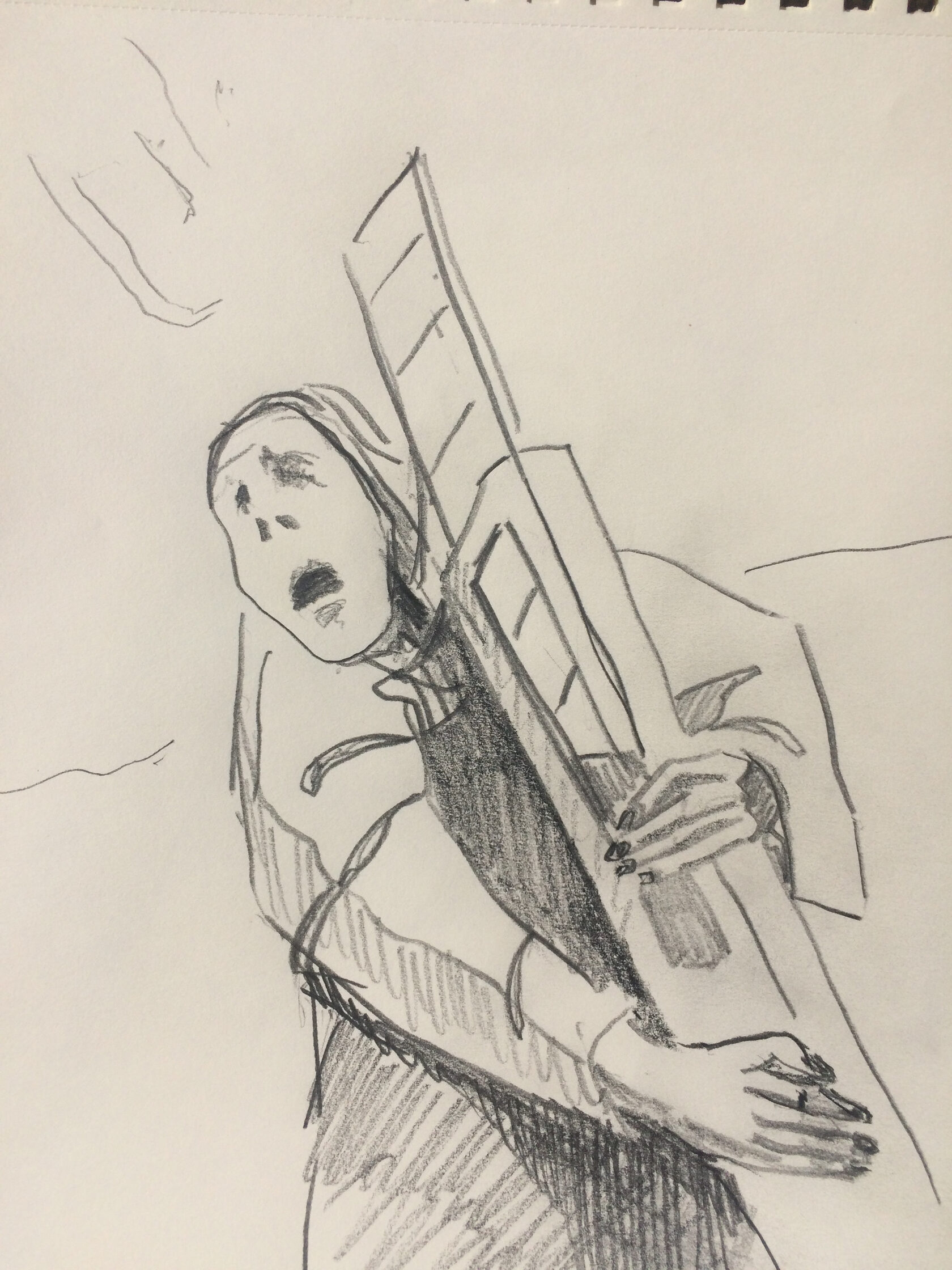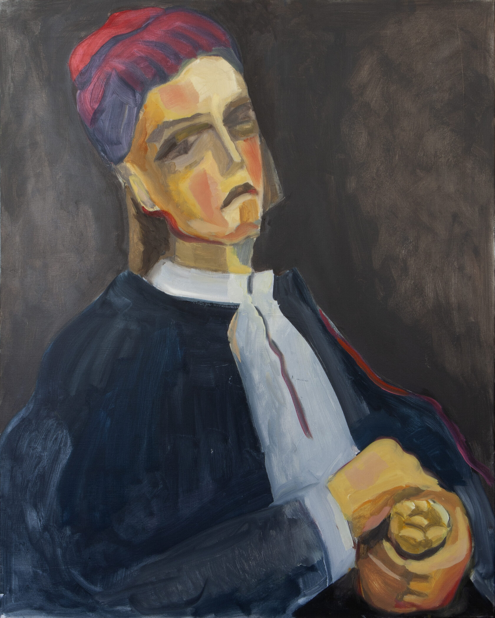 Here the figure is partly imitating an antique sculpture of Venus (which is mostly exhibited with a broken hand), and partly depicting artist's state. There is even a C-section scar seen. The acidic green is chosen to increase the impression of pain. The color is also inspired by minerals Aragonite and Pyromorphite.